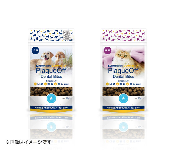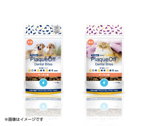 天然の海藻(アスコフィラムノドサム)を主原料とする安全な犬猫用のデンタルおやつです。毎日食べることで口臭や歯垢、歯石付着が減少する効果が認められており、この効果は世界40カ国で特許を取得しています。(日本第4648611号)