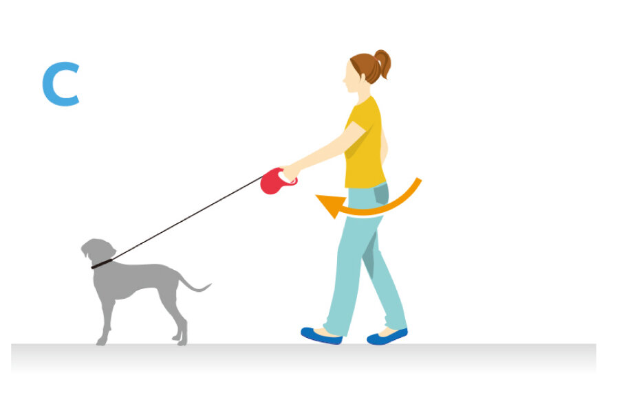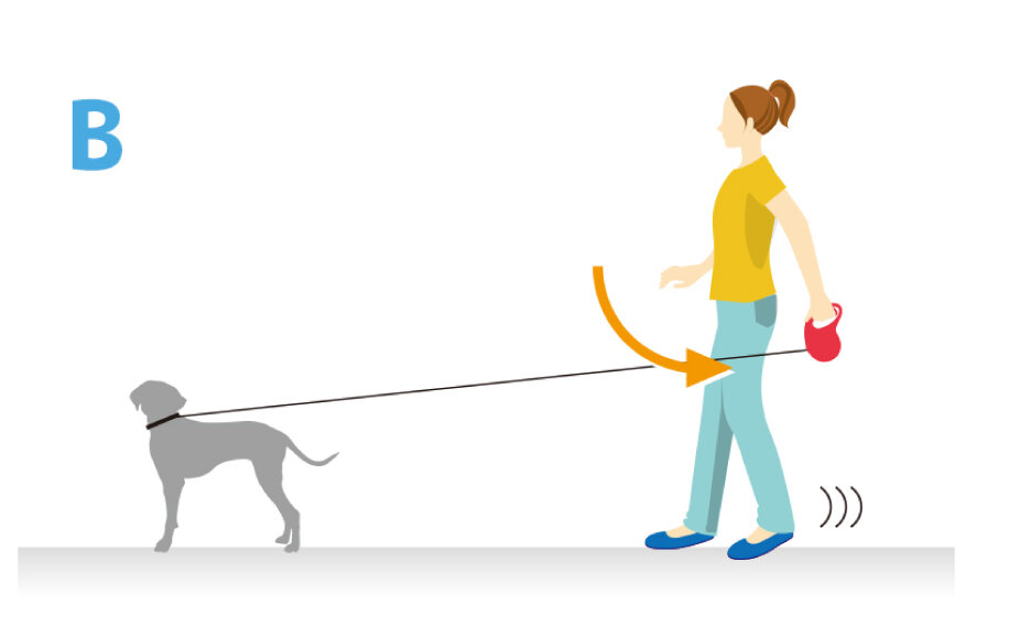 ブレーキボタンを放し、腕を愛犬がいる方へ振ると、リードが巻き取られます。
