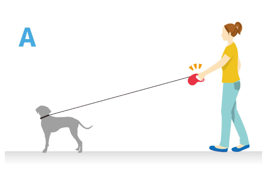 ●使用中に万が一首輪やリードが切れるか外れた場合は、すぐにブレーキボタンを押し、顔を横に向けてください。リードが戻ってきて怪我をする恐れがあります。危険な場合はすぐに手から離してください。