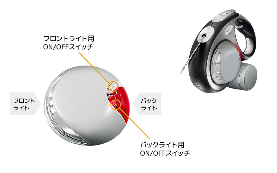 ブレーキボタンを押すと、リードの伸縮がストップします。