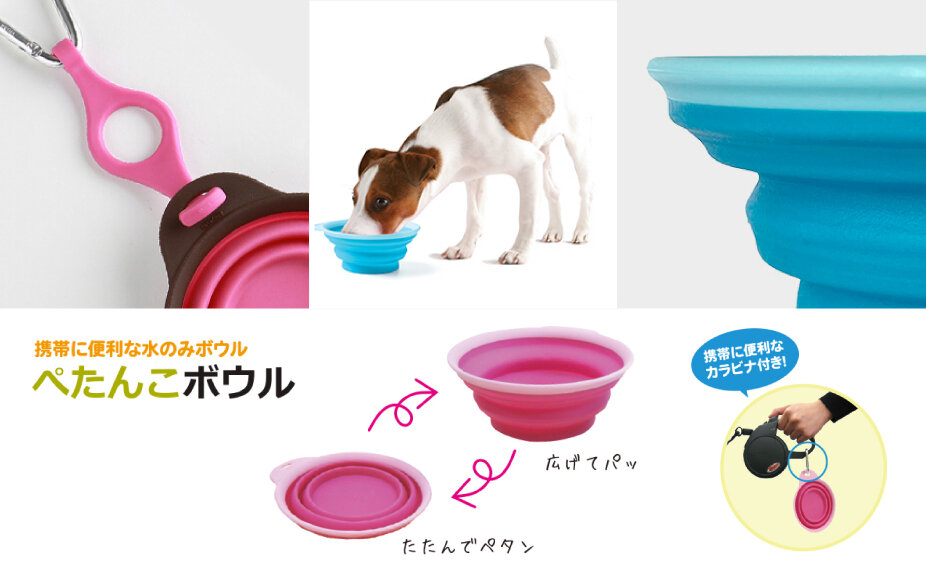 ボウルは付属のカラビナで、お持ちのリードやカバンにお付けいただけます。